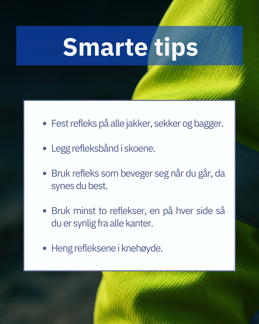 Bruk refleks – alltid. Det er en enkel, men livsviktig vane som gjør oss alle tryggere på veien.