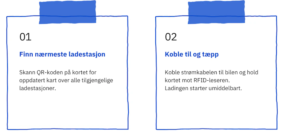 Kortet fungerer ved mange av våre ladepartnere. Du kobler til strømkabelen, tæpper kortet mot RFID-leseren - og så er du i gang. Ingen apper, ingen innlogging, ingen ekstra registrering. Enklere blir det ikke.