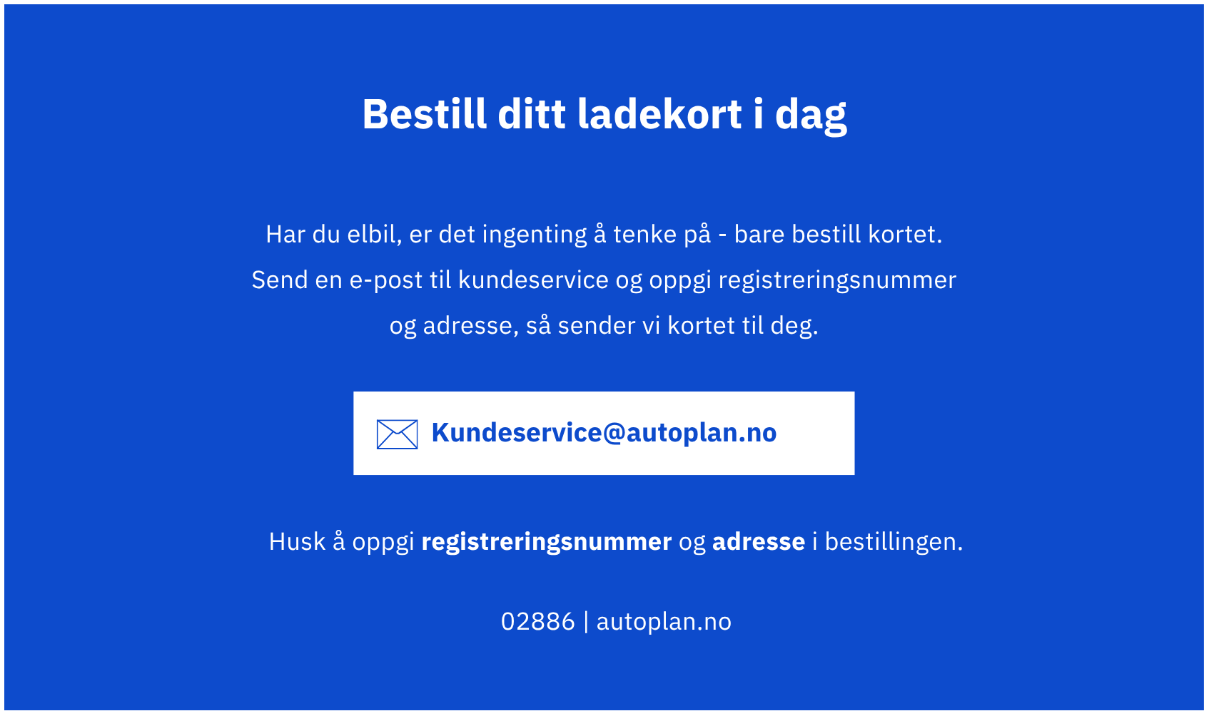 Fra nå av vil alle kunder som får utlevert en ny elbil gjennom Autoplan automatisk motta det nye service og ladekortet. Du trenger ikke gjøre noe ekstra, kortet er klart og følger med når bilen leveres.